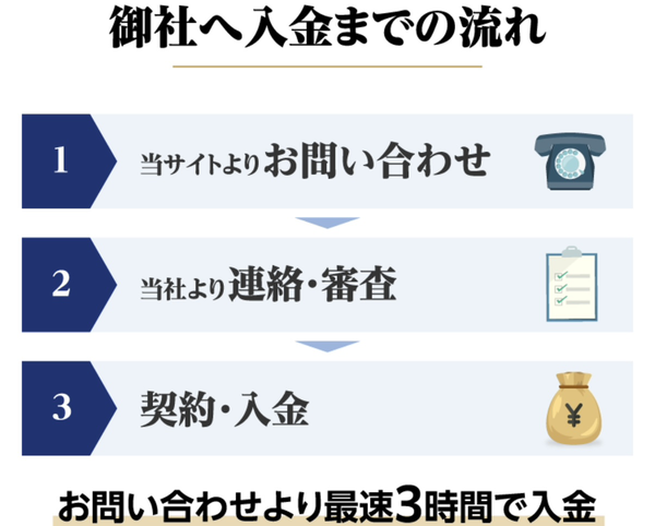 | 入金スピード | 最短即日3時間 |